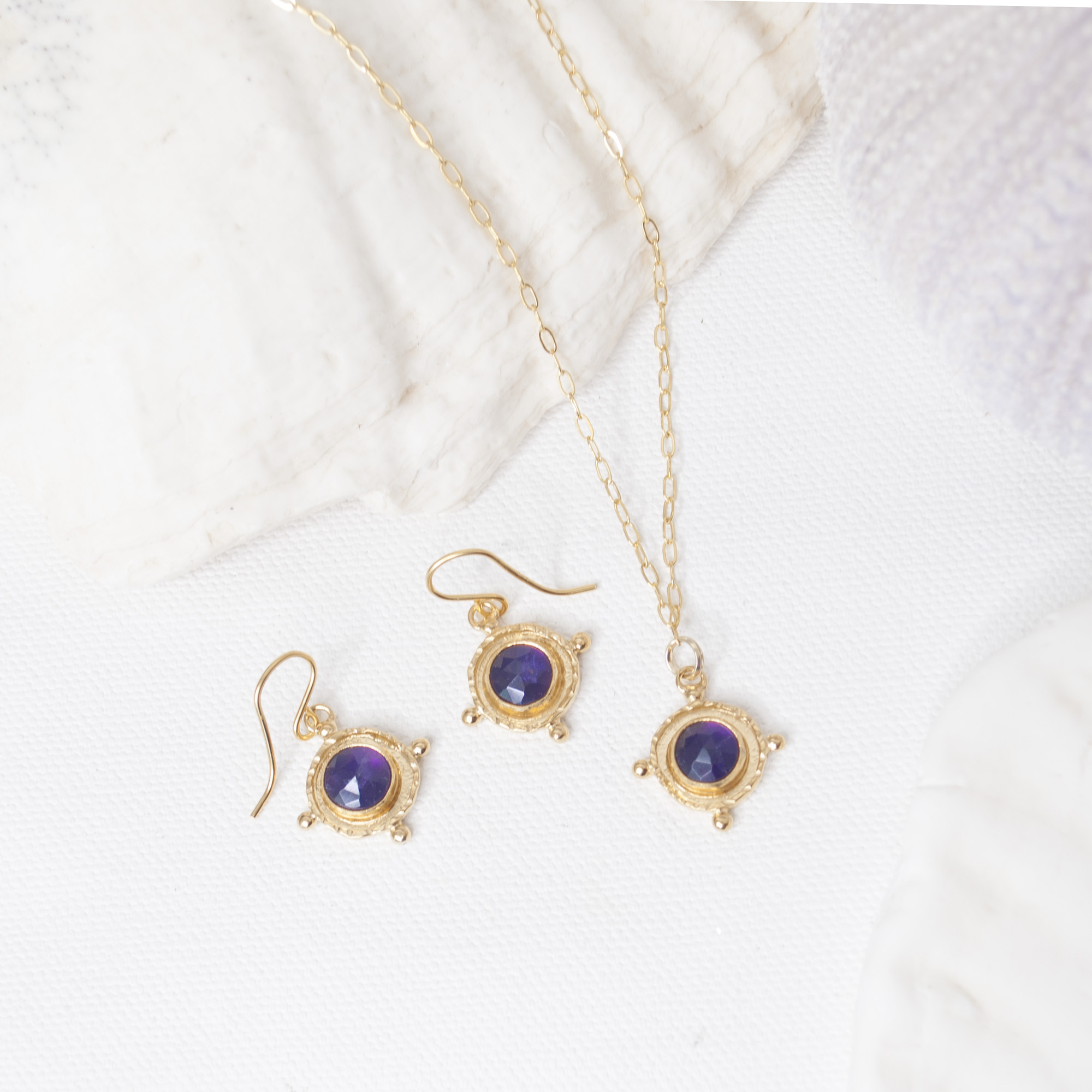 Amethyst is a gorgeous purple gemstone that has been adored through the ages for its serene, calming colour, wearability and healing properties. Amethyst is known to be a stone of protection, spiritual inspiration and goddess energies. Leander D’Ambrosia jewels are made with mid-tone amethyst gems for their stunning purple hues. Amethyst is the birthstone for February and is the traditional gift to celebrate the 6th wedding anniversary. Wear Amethyst gemstones and rejoice in their tranquil, rejuvenating charm.