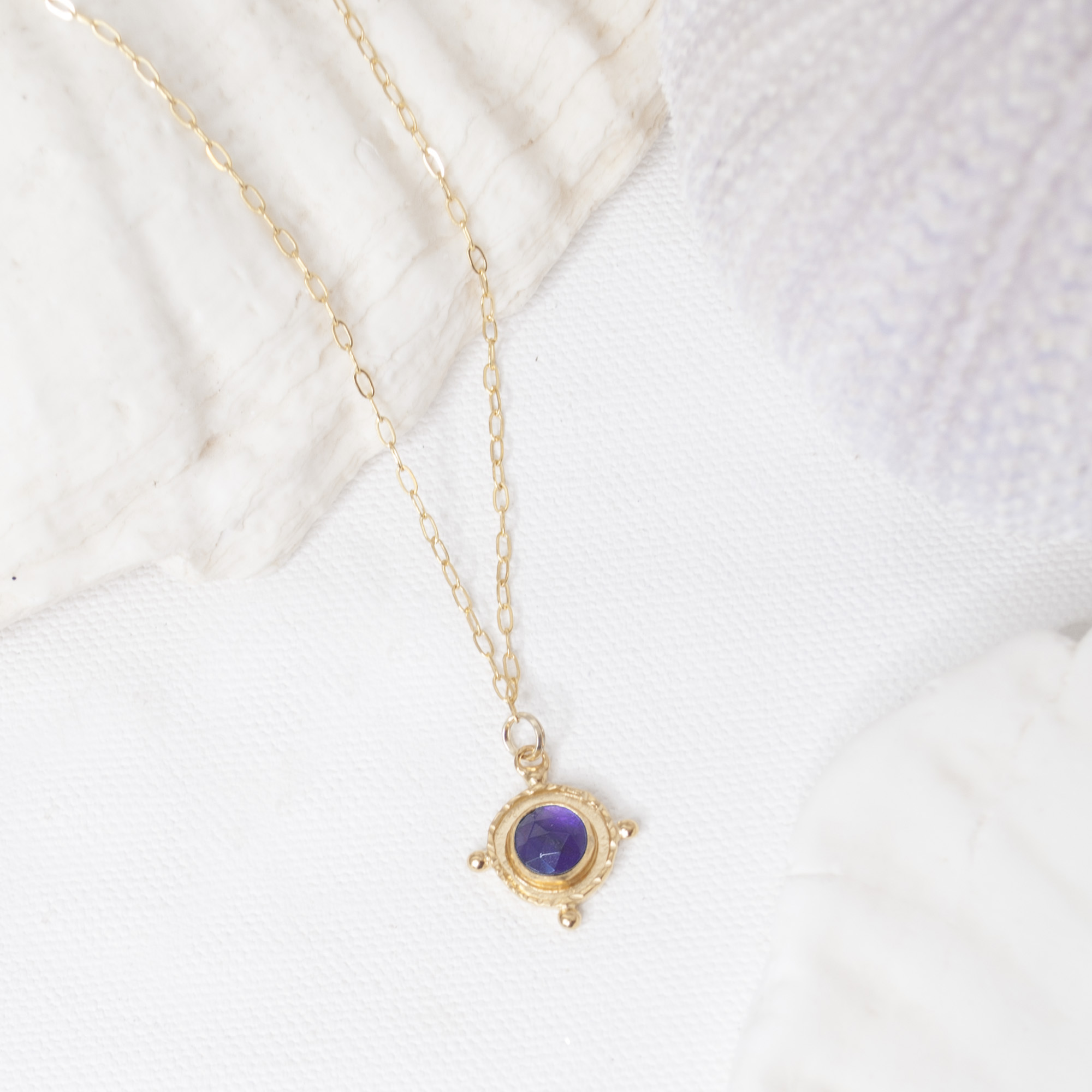 24k gold vermeil Amethyst Gem Medallion Necklace
