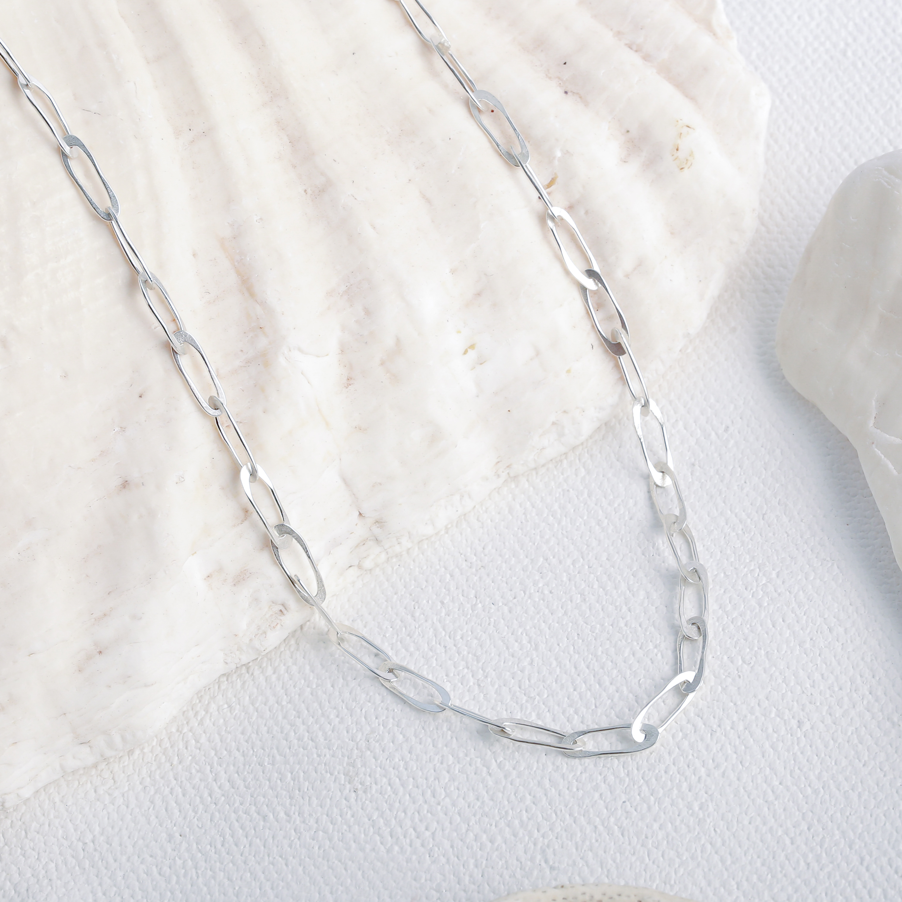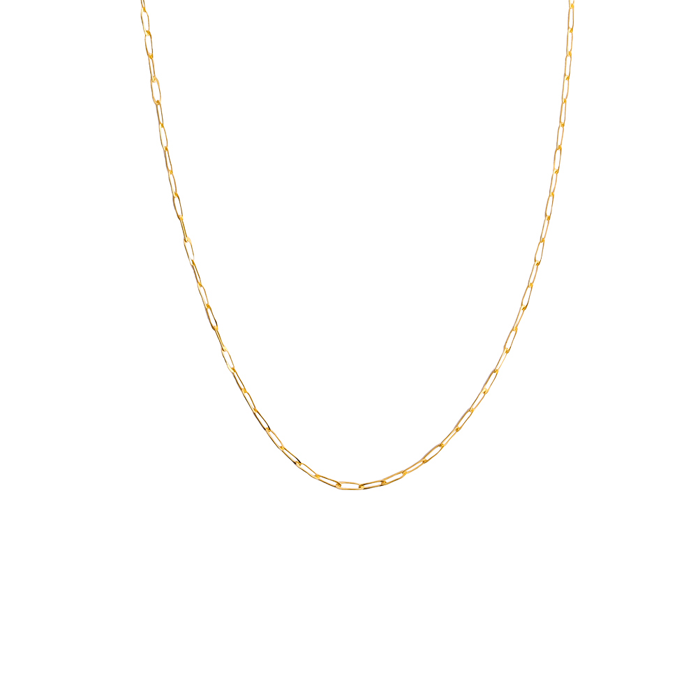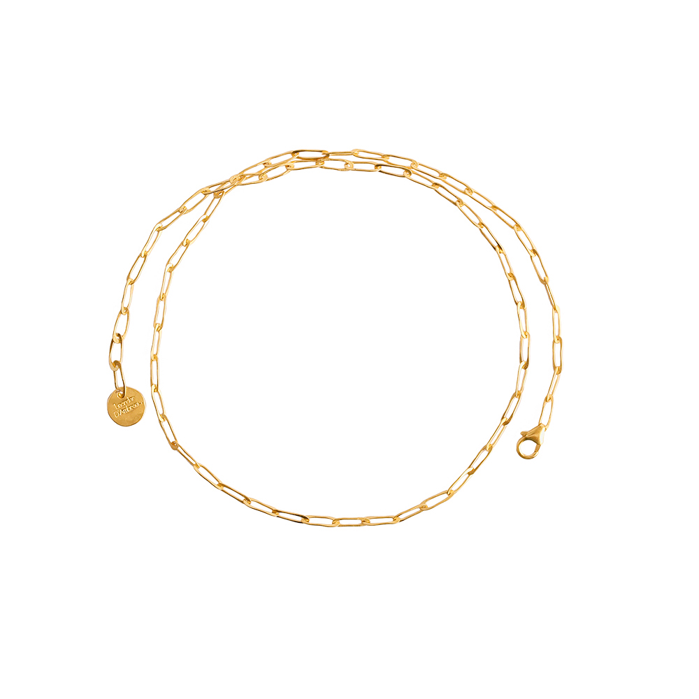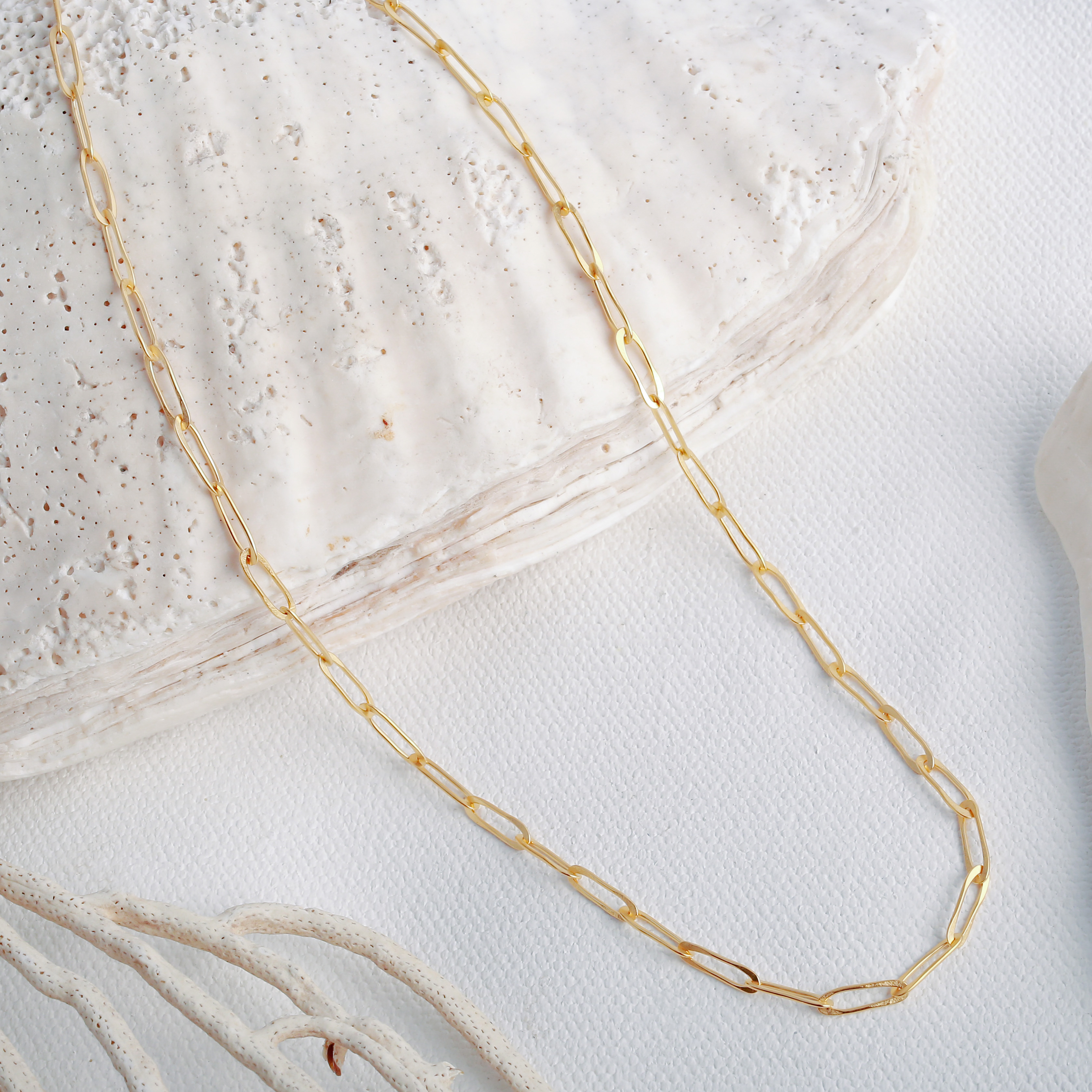 Featuring individually hammered elliptical shaped links, our handmade 24k gold vermeil elliptic Delicate Paperclip Chain is the artistic piece you have been looking for. Organic, oval forms are forged to perfection to create an artful, unique chain with an elevated artisan quality.
