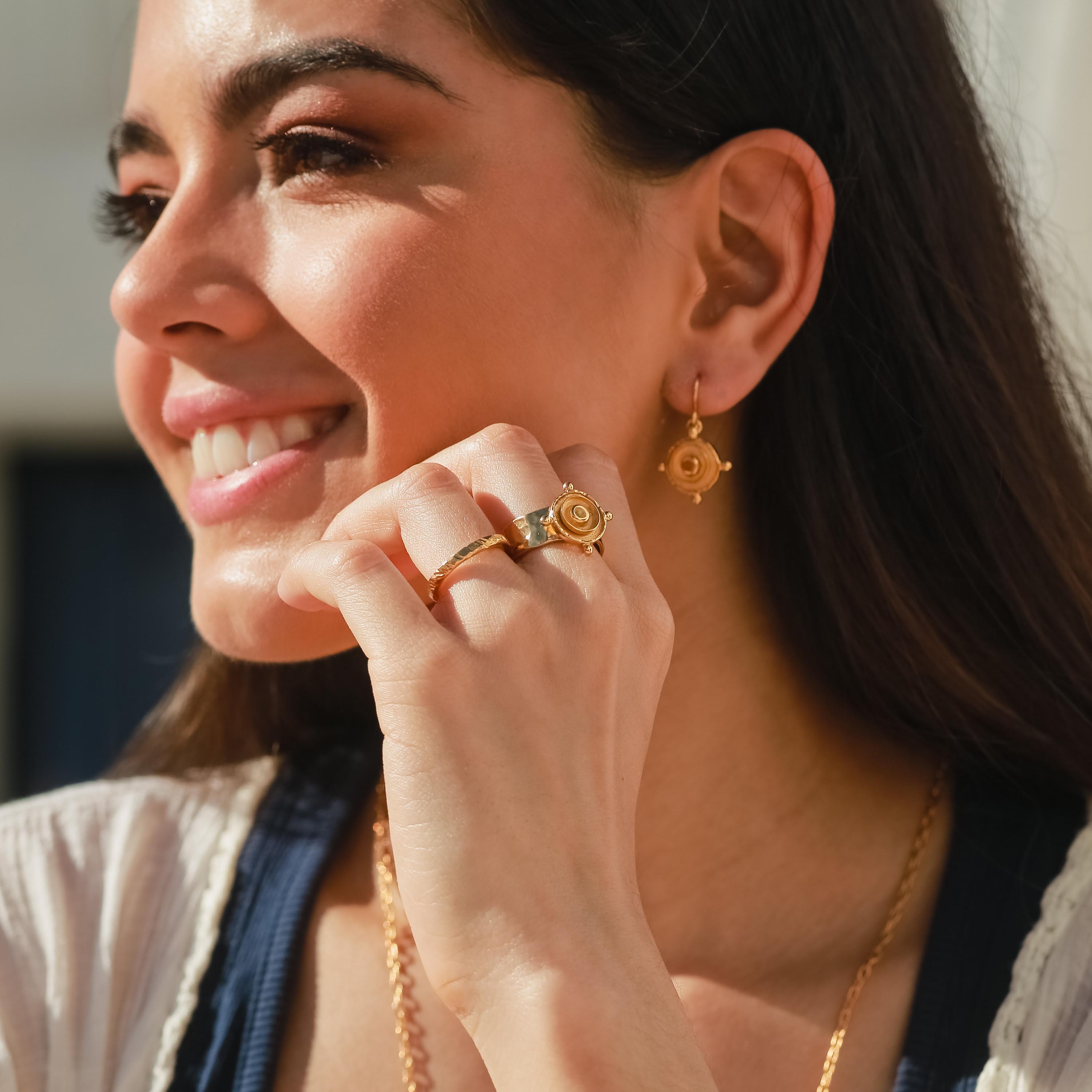 Featuring irregular, heavy hammer marks and dramatic texturing, this gold Hammered Stacking Ring is the perfect, rustic addition to your ring collection. Perfect when worn solo and great for layering too!