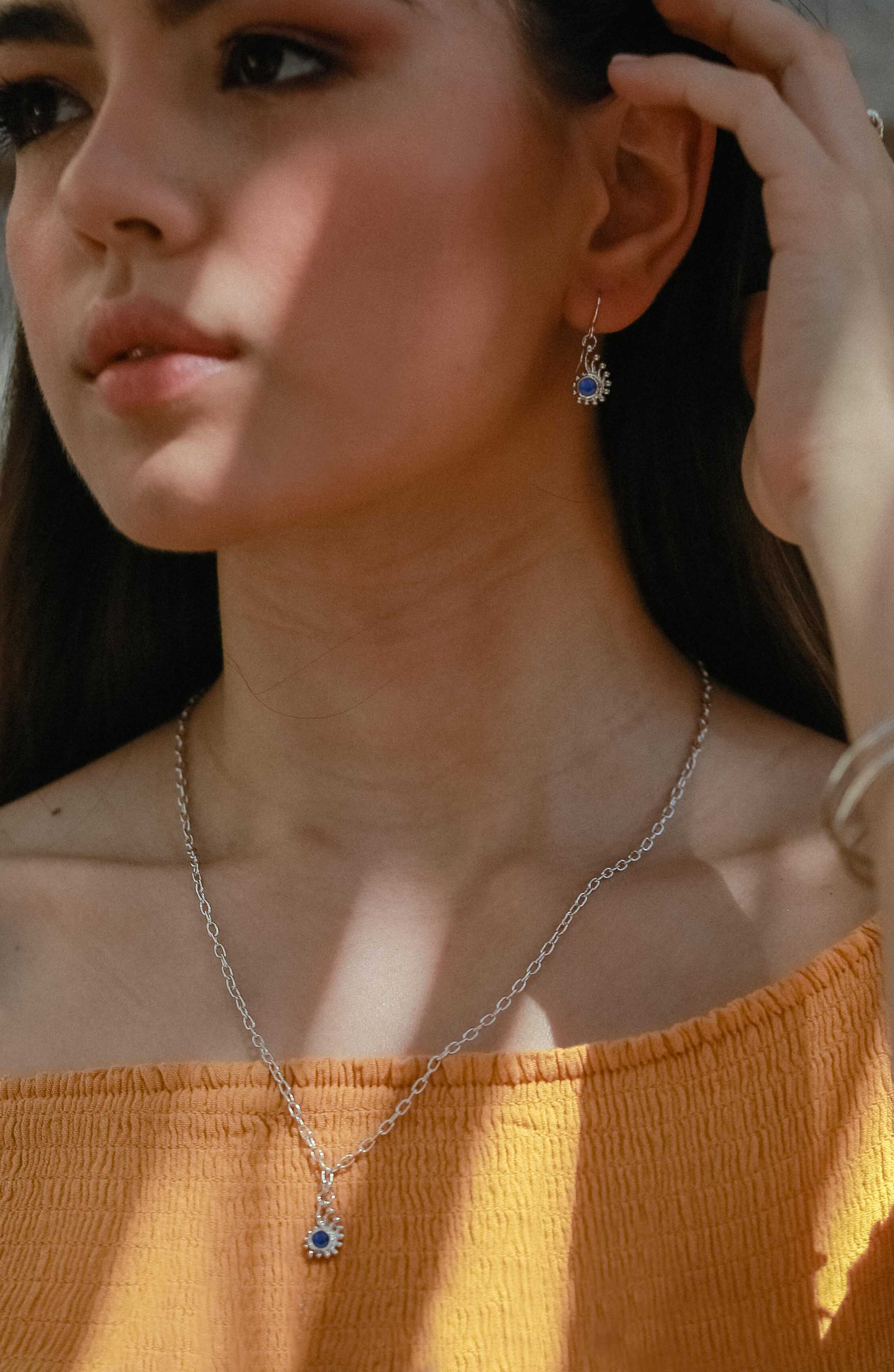 Made with genuine, high-grade, hand picked Lapis Lazuli cabochons. Ancient Egyptians saw Lapis with it's speckled characteristics and flecks of gold pyrite as a symbol for the twinkling night sky above. Found in royal tombs, lapis is reserved for the most extraordinary amongst us. In modern times, Lapis symbolises strength and courage, royalty and wisdom, intellect and truth. Be adorned in the deep blue beauty and sacredness of this ultramarine gemstone.