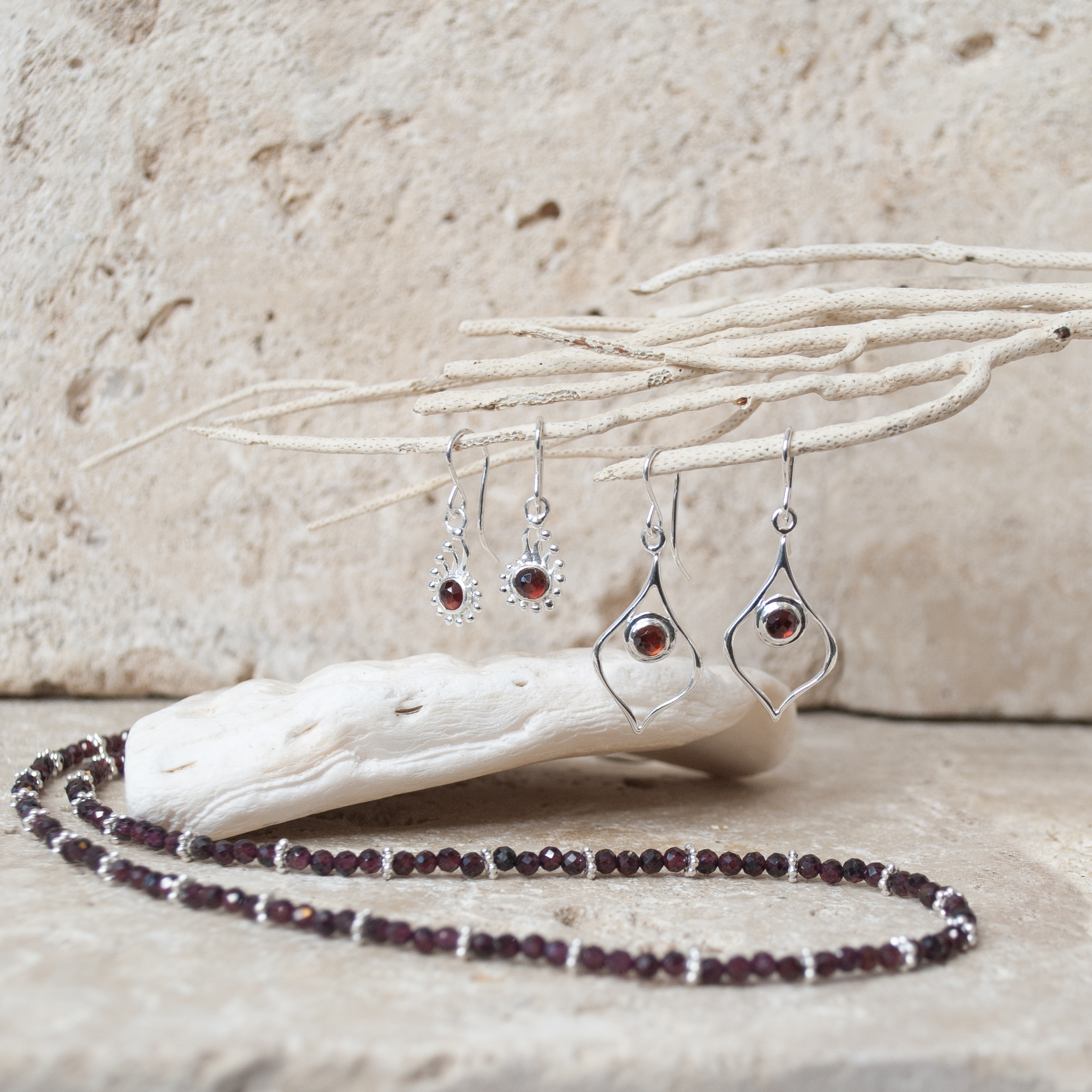 Made with luscious, red, genuine Mozambique garnet. Garnet has long been used to symbolise the heart, one's inner fire, life force and love. With its deep, warm red intensity, allow the beauty of red garnet to ignite your inner fire and inspire vigor in your daily life. Garnet is also the birthstone for January. Be adorned in jewels that make your heart sing.