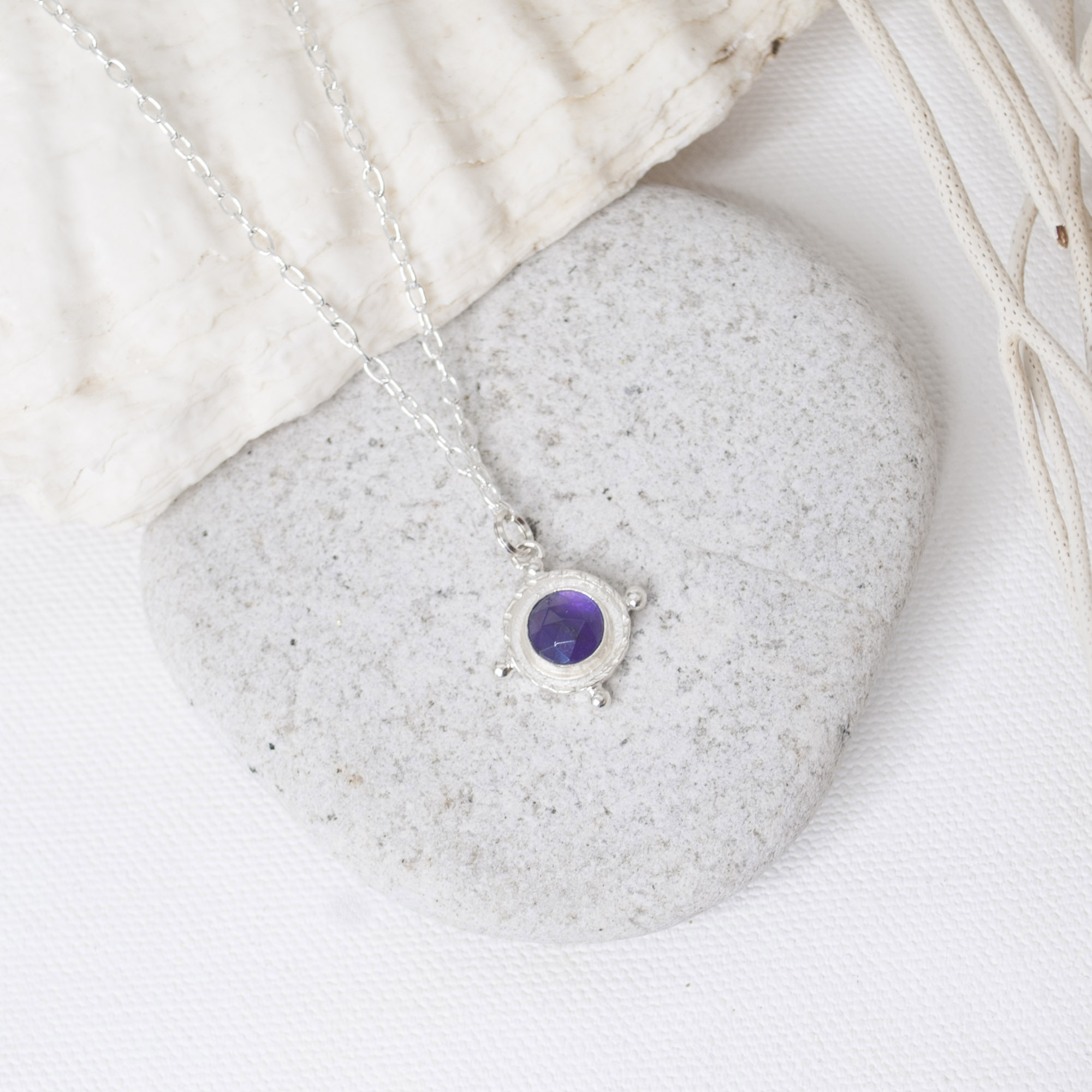 Strong ships aren't meant for safe harbours. Inspired by the helm of an old sea faring ship and antique nautical motifs, this Silver Amethyst Gem Medallion Necklace is designed to accompany you as you navigate the journey of life. This gorgeous necklace is perfect solo and also great when layered with other necklaces!