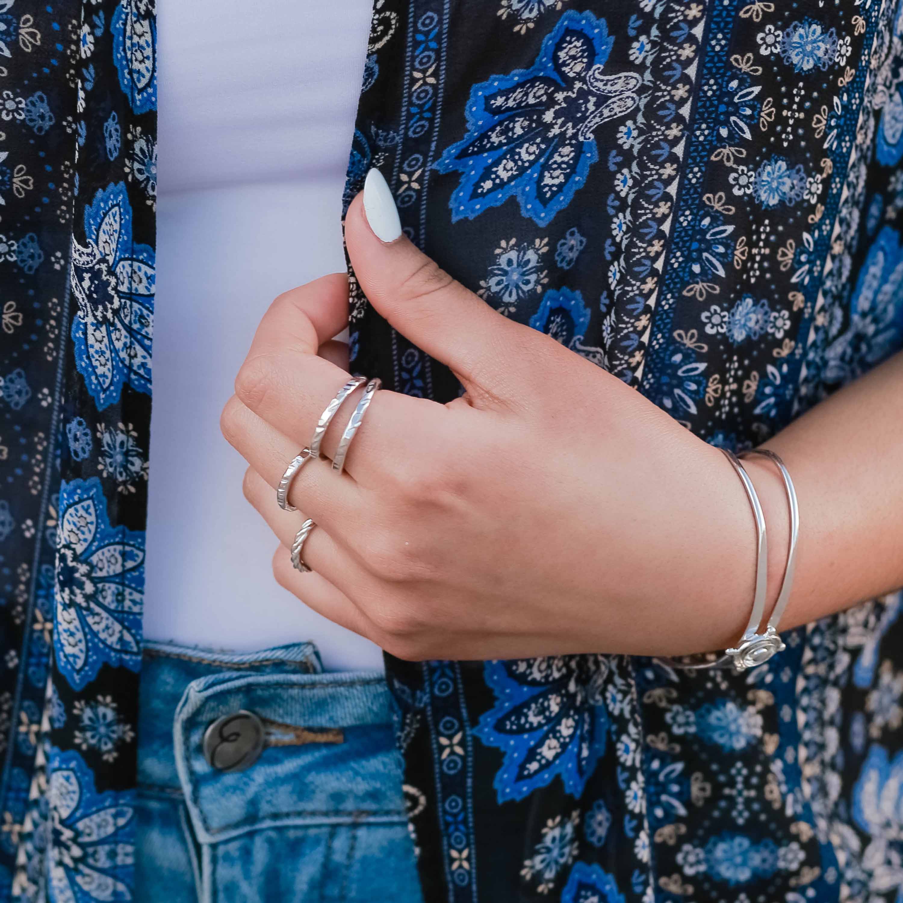 Featuring irregular, heavy hammer marks and dramatic texturing, this silver Hammered Stacking Ring is the perfect, rustic addition to your ring collection. Perfect when worn solo and great for layering too!