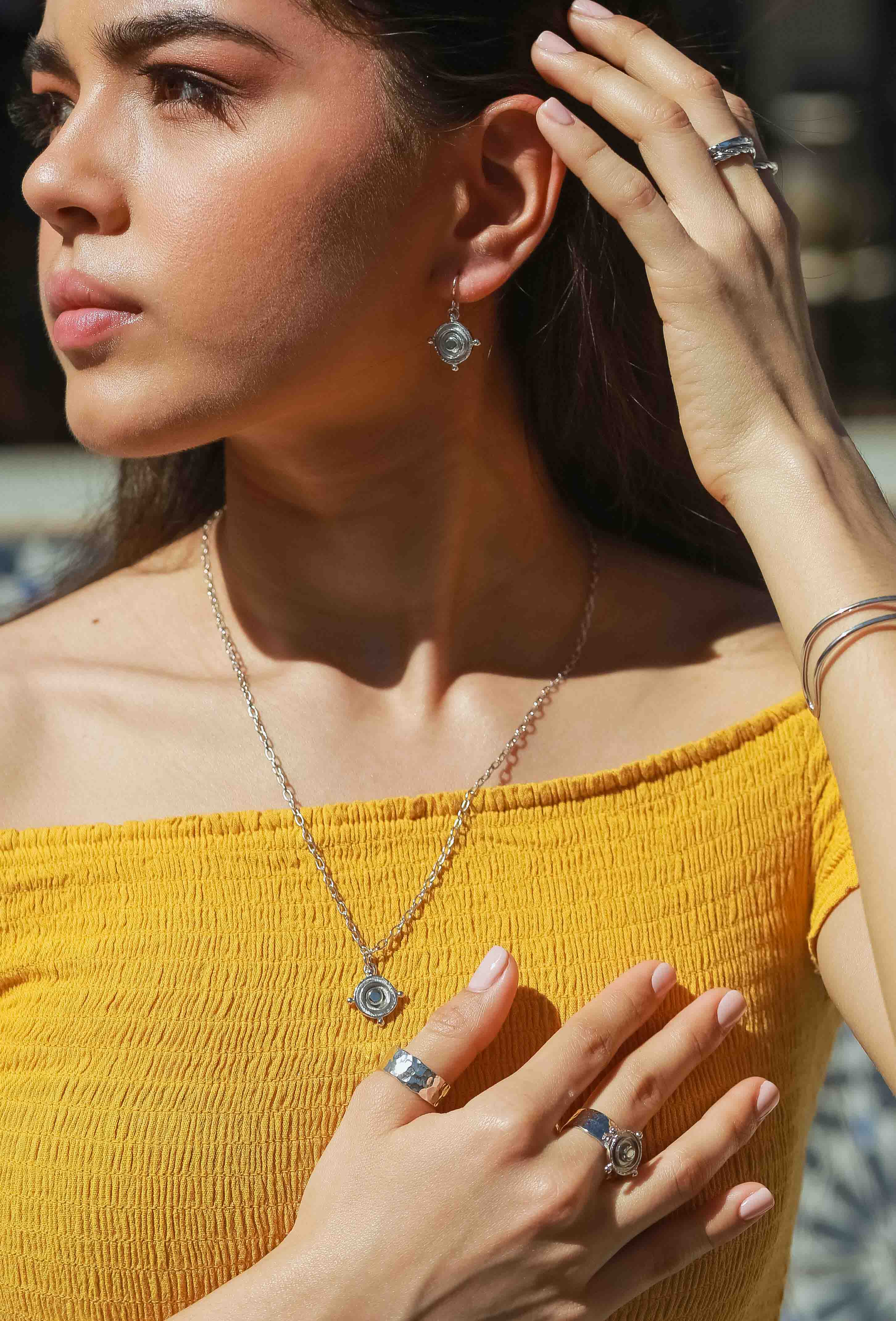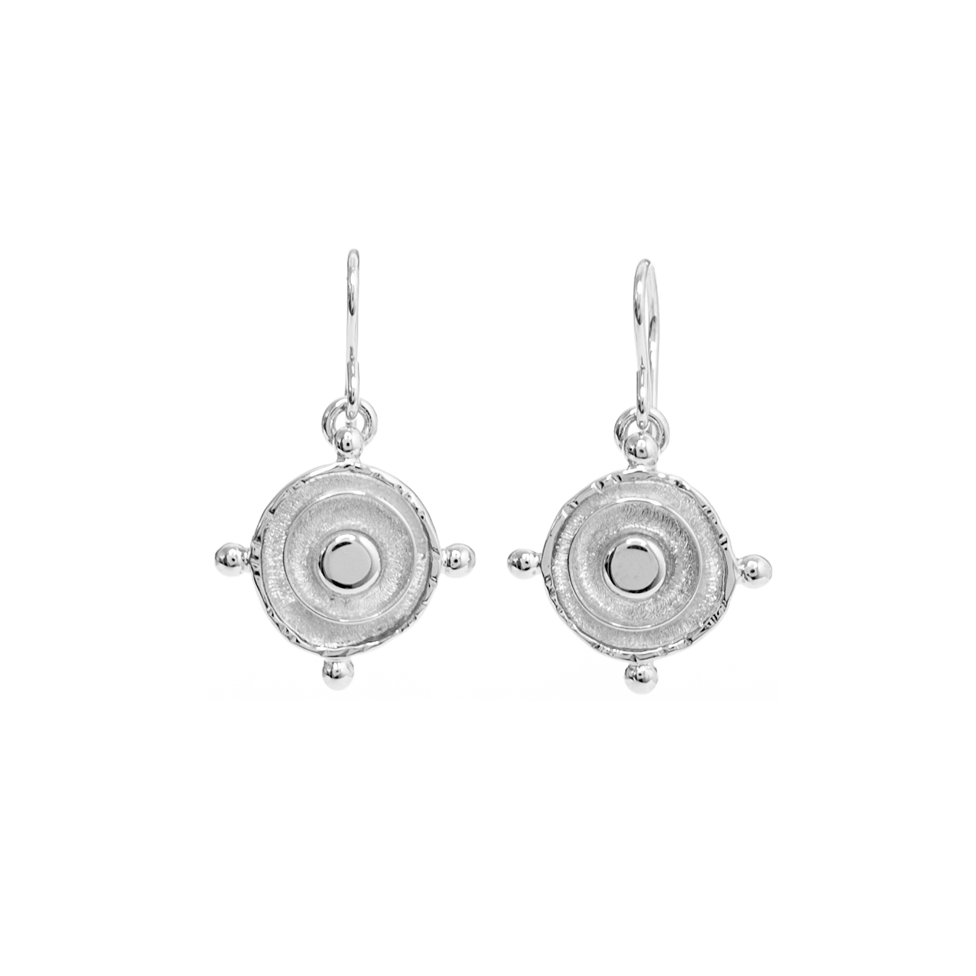 Strong ships aren't meant for safe harbours. Inspired by the helm of an old sea faring ship, these silver Nautical Medallion Stud earrings are designed to accompany you as you navigate the joys of life.
