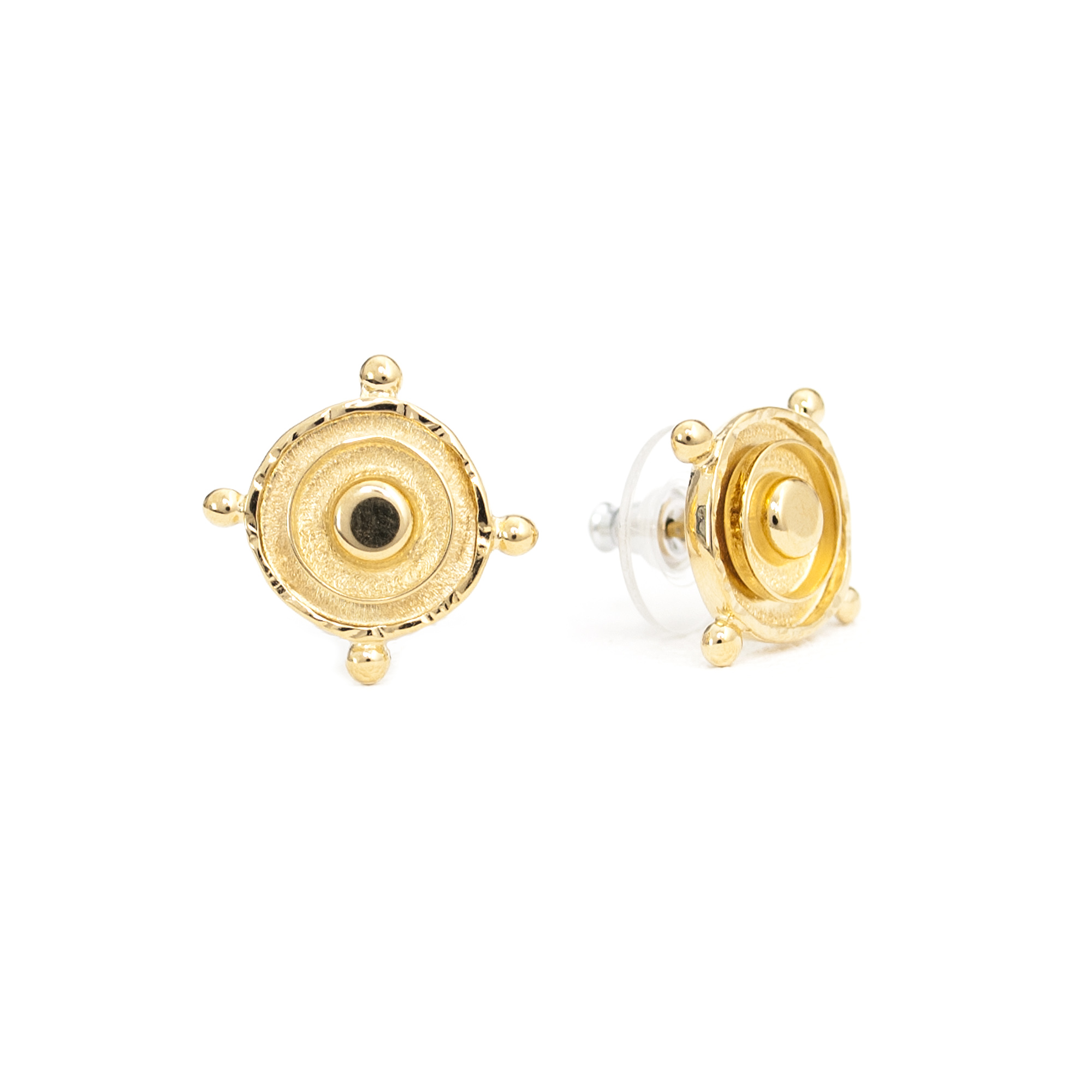 Strong ships aren't meant for safe harbours. Inspired by the helm of an old sea faring ship, these sterling silver Nautical Medallion Stud earrings are designed to accompany you as you navigate the joys of life.