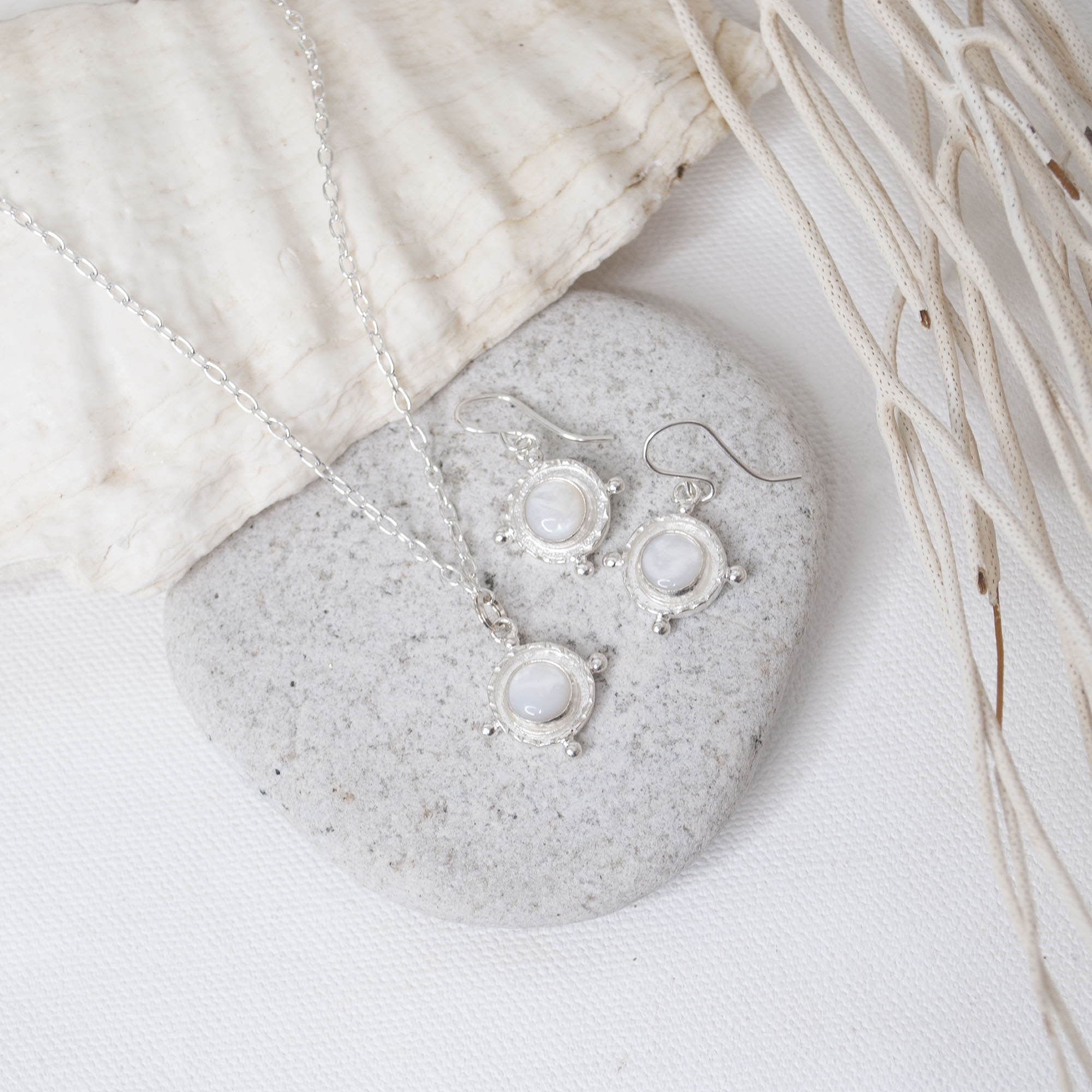 Be adorned in the luminous, glowing beauty of pearls and evoke a sense of mother nature’s natural beauty. Born of an iridescent seashell, Pearl is a symbol of motherly love, protection, nurturing compassion and femininity. Popular for its pearlescent, gleaming, white colour, you can wear this ode to the sea in any season of life. Pearl is the birthstone for June and the traditional 30th wedding anniversary gift. Leander D’Ambrosia Mother of Pearl cabochons are expertly hand cut from freshwater seashells.
