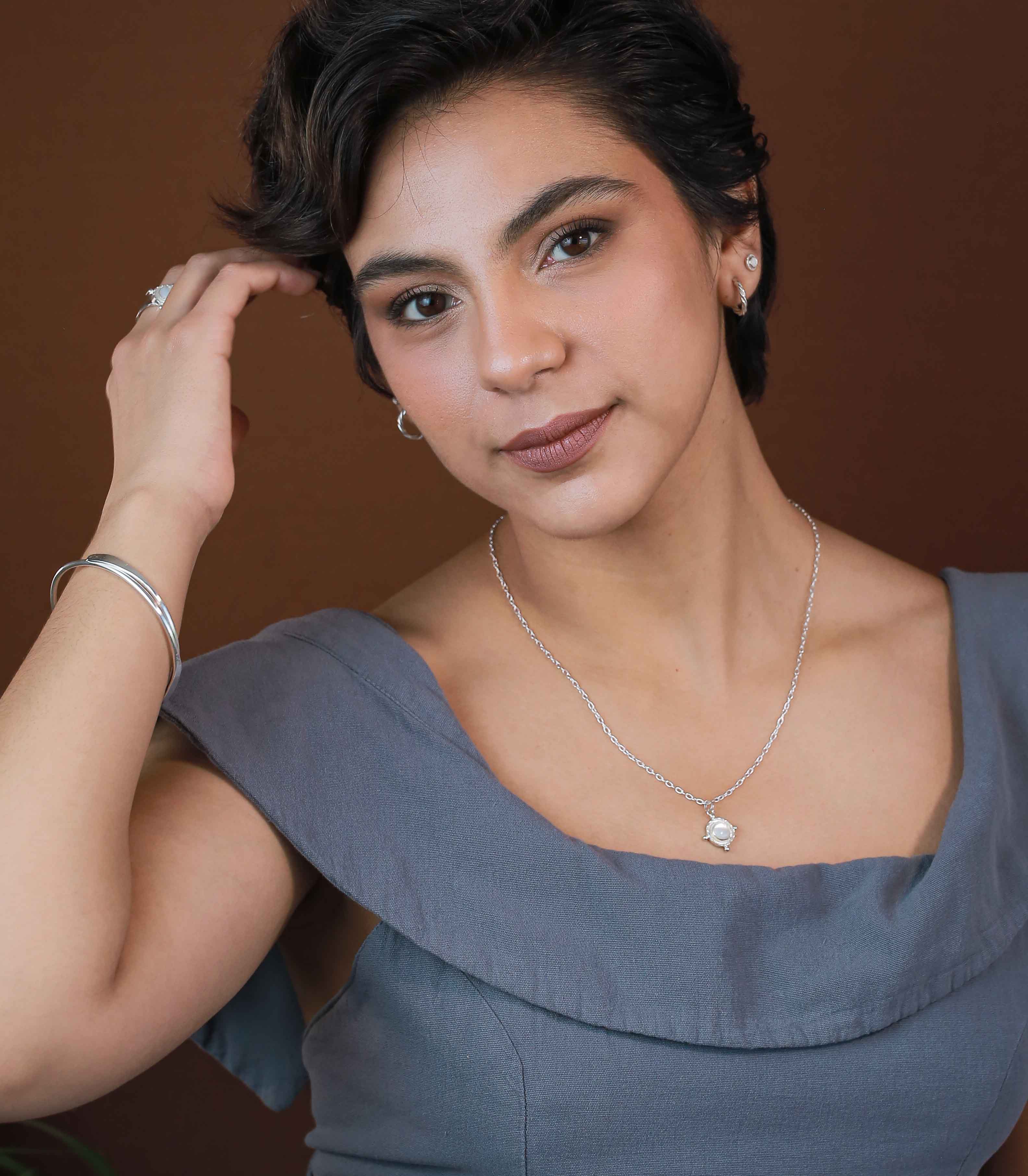 Strong ships aren't meant for safe harbours. Inspired by the helm of an old sea faring ship and vintage nautical motifs, this Silver Pearl Gem Medallion Necklace is designed to accompany you as you navigate the journey of life. This gorgeous necklace is perfect solo and also great when layered with other necklaces!
