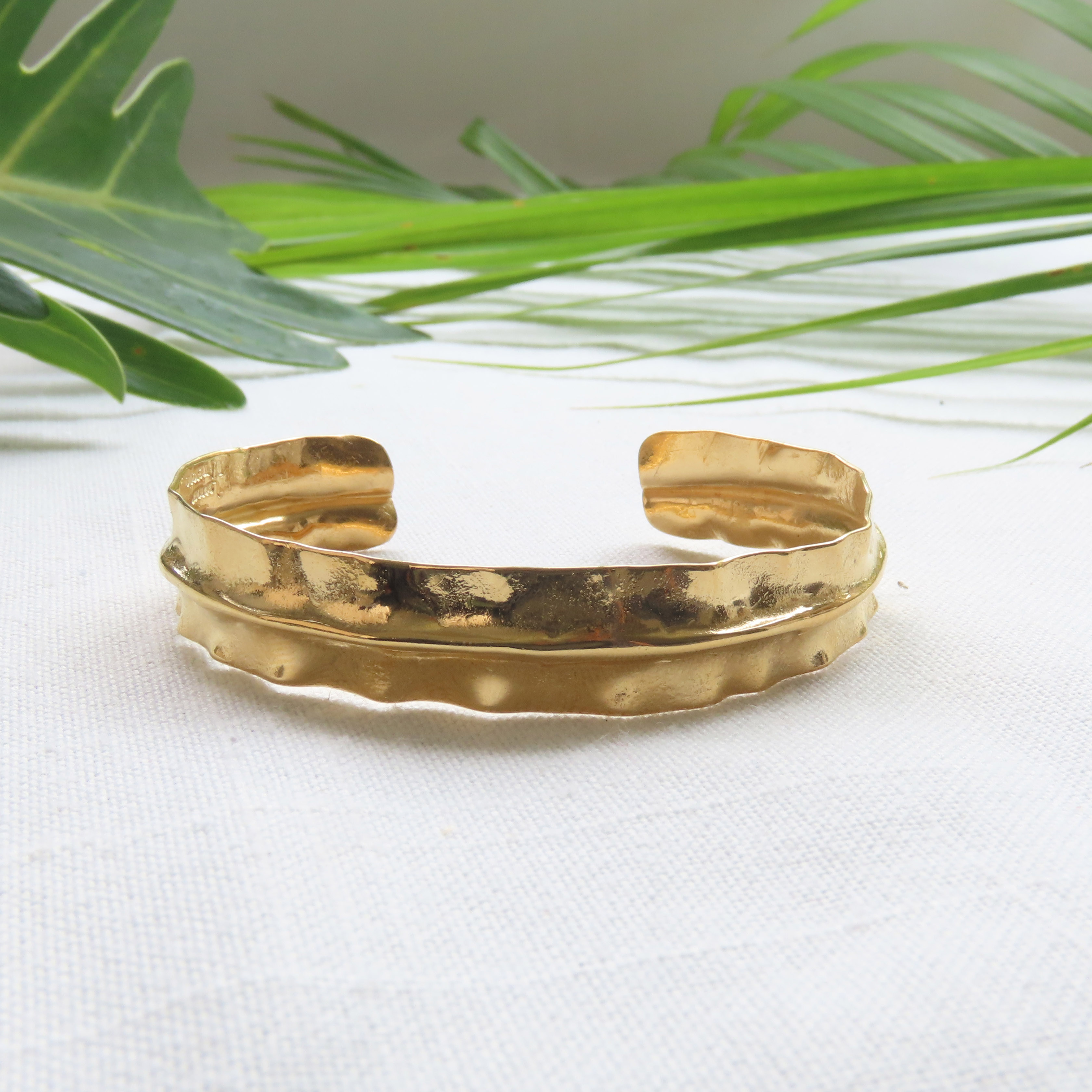 The sterling silver Ridge cuff bracelet is artfully hand forged and crafted using ancient silversmithing techniques. Each bracelet is truly unique, as the hammer boldly strikes and the metal bends and creases in response to the artist's touch. The Ridge cuff is simple and minimalist when worn solo, and dynamic when paired with other bracelets!