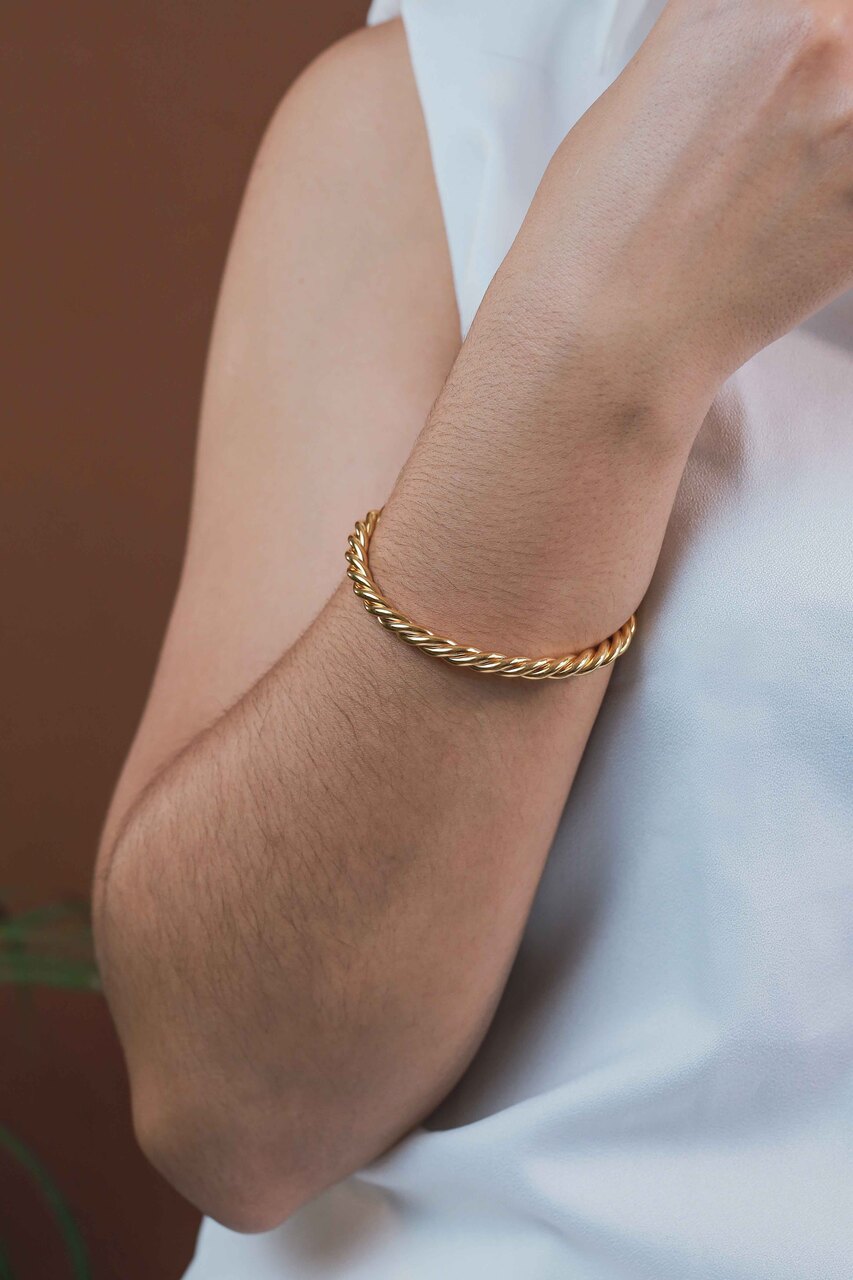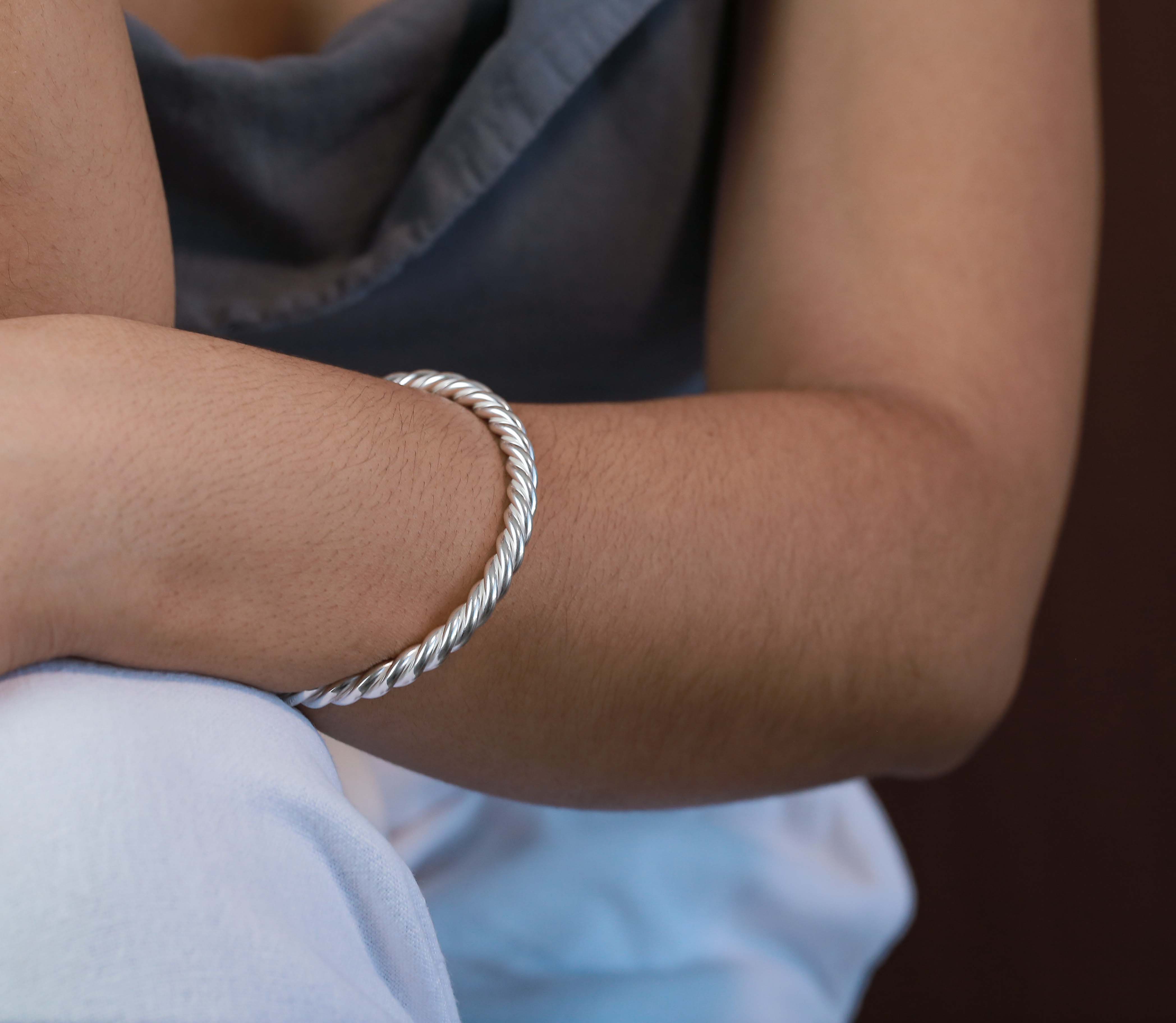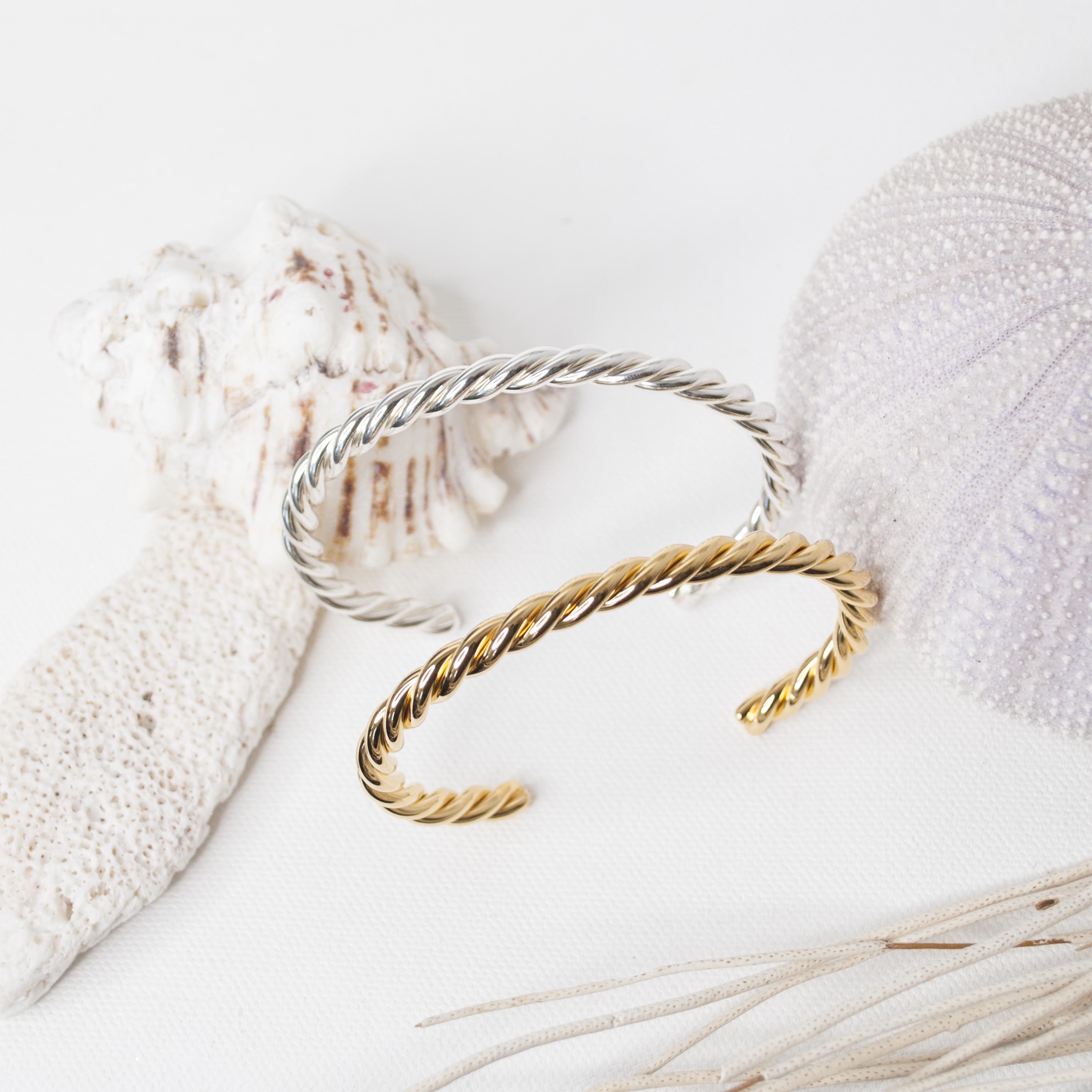 Entwined and bound together in unison, each strand of the silver Twisted Rope Cuff bracelet is artfully braided together to create this classic twisted style bracelet. Designed to stand strong and be stunning when worn solo, while altogether perfect for layering with other bracelets too. This timeless bracelet will be a favourite to wear over and over again, night or day.